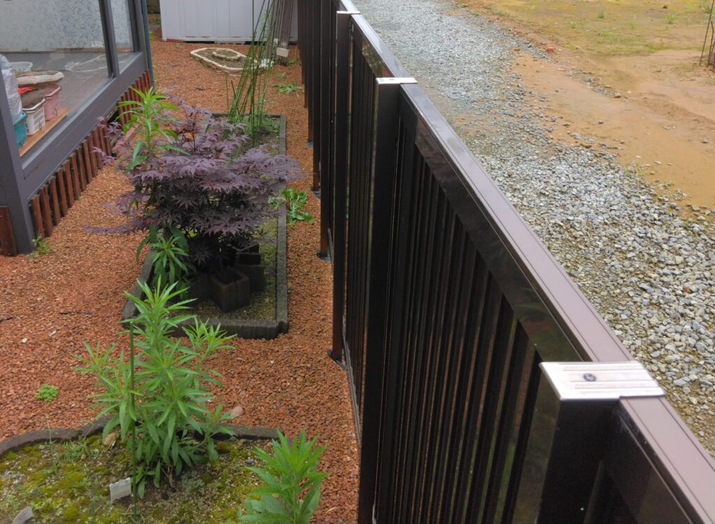 隣地との境界にはブラックのメッシュフェンスを設置しました。
