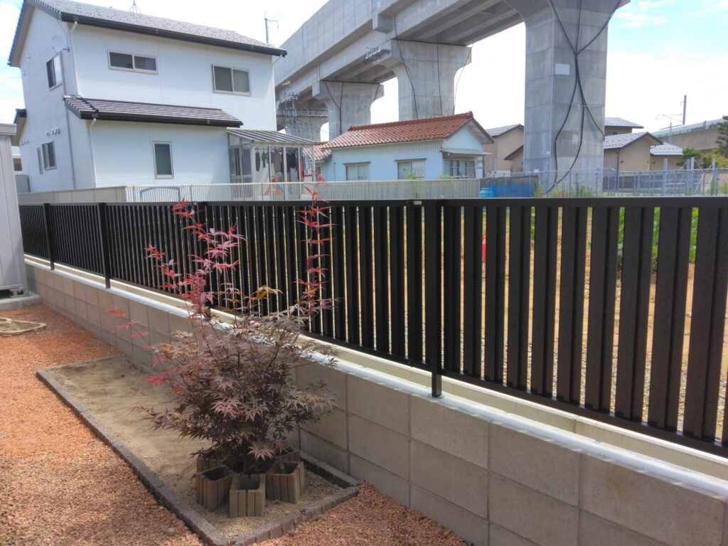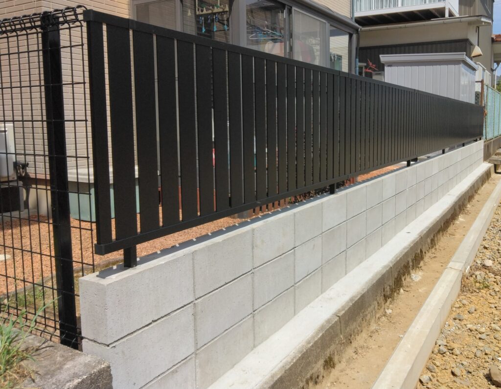 その教訓から、防災の意味も込めて既存のフェンスを撤去し、ブロックを3段積み(約60cmの高さ)に。その上に新しくフェンスを施工しました。
